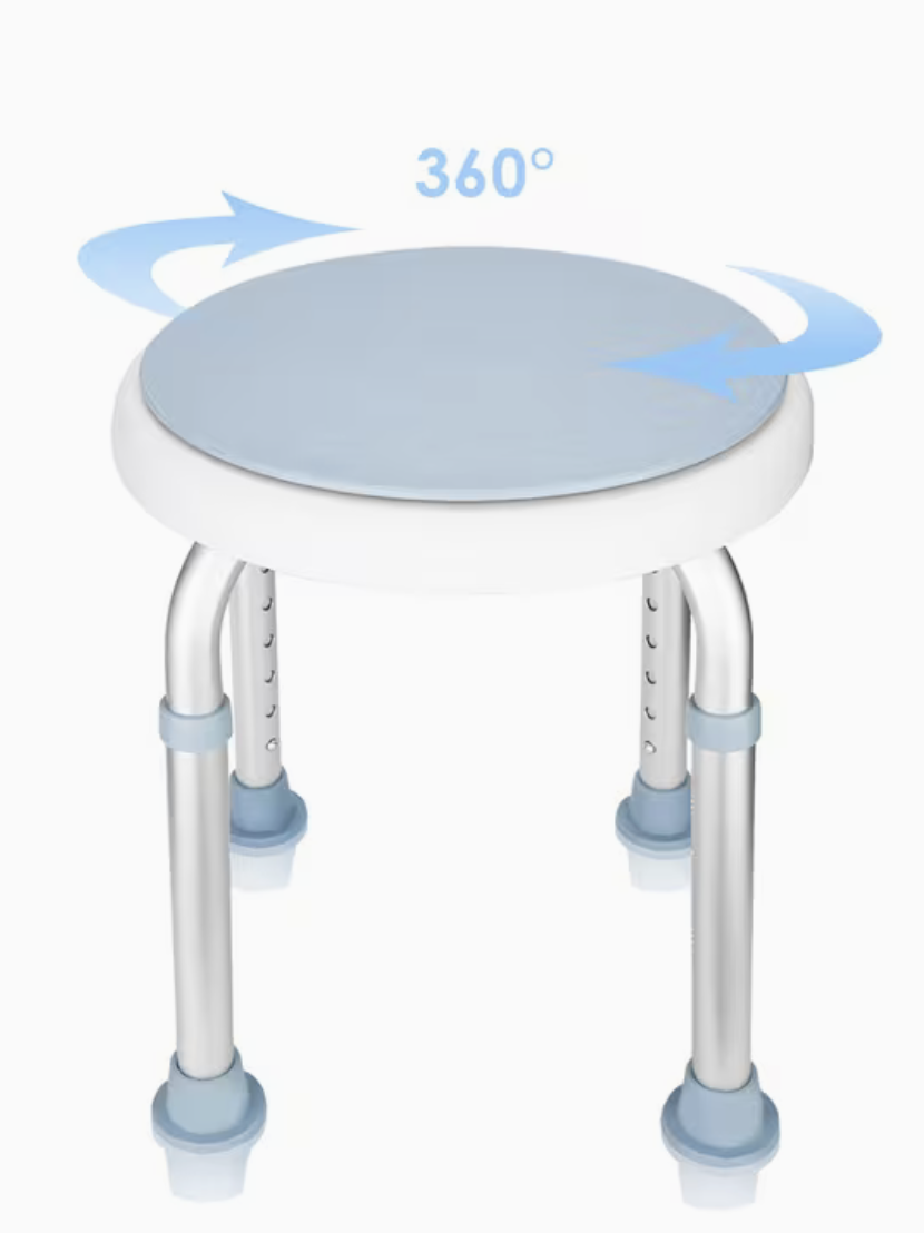Deze praktische douchekruk met een draaibare zitting biedt comfort en veiligheid tijdens het douchen. Dankzij het compacte ontwerp past de kruk in vrijwel elke douche en is hij ideaal voor senioren of mensen met beperkte mobiliteit. De 360° draaibare zitting maakt het draaien gemakkelijk, zonder dat men het lichaam hoeft te verplaatsen. De kruk is in hoogte verstelbaar en uitgerust met antislip doppen voor maximale stabiliteit.