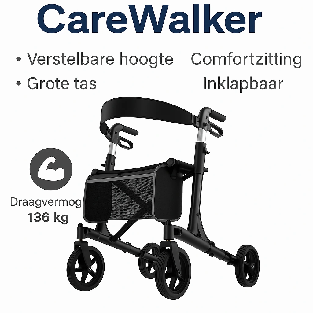 CareWalker Luxe Rollator – Lichtgewicht • Verstelbare Hoogte • 136kg Draagvermogen