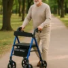 Deze moderne blauwe rollator is ontworpen voor gebruikers die waarde hechten aan comfort, veiligheid én uitstraling. Met een lichtgewicht en opvouwbaar frame (slechts 6,7 kg) is hij gemakkelijk mee te nemen of op te bergen. De in hoogte verstelbare handgrepen maken hem geschikt voor mensen tussen de 150 en 190 cm, en het zachte zitkussen biedt een comfortabele rustplek tijdens het wandelen. De anti‑slip wielen zorgen voor extra veiligheid, zowel binnen als buiten.