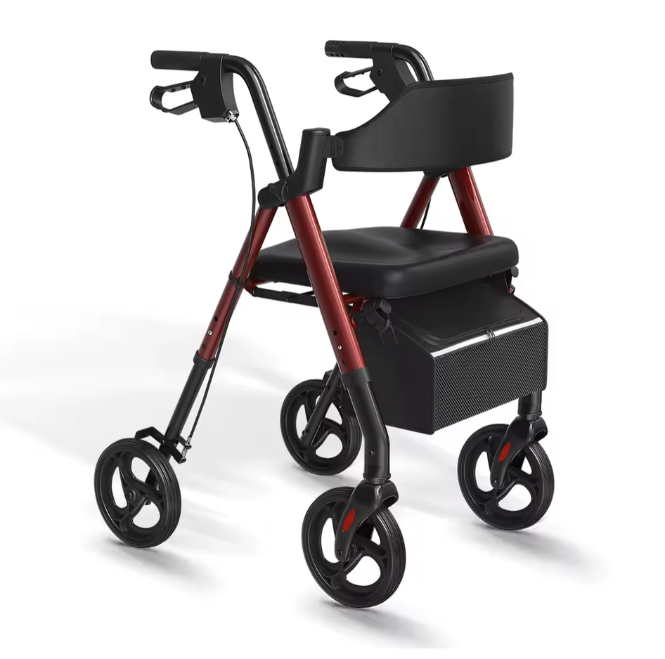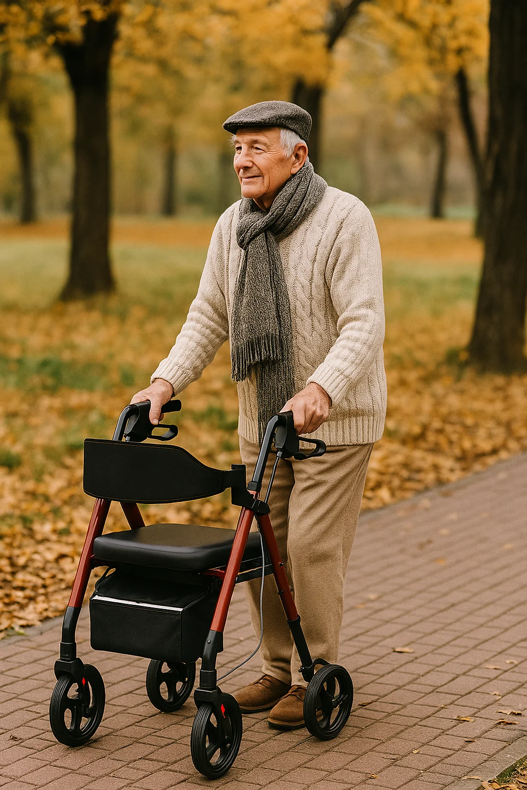 Stijlvol rood design – geeft een frisse, moderne uitstraling in plaats van het traditionele “mobiliteitshulpmiddel‑look”. Dit maakt het aantrekkelijker voor gebruikers die ook op stijl letten.
