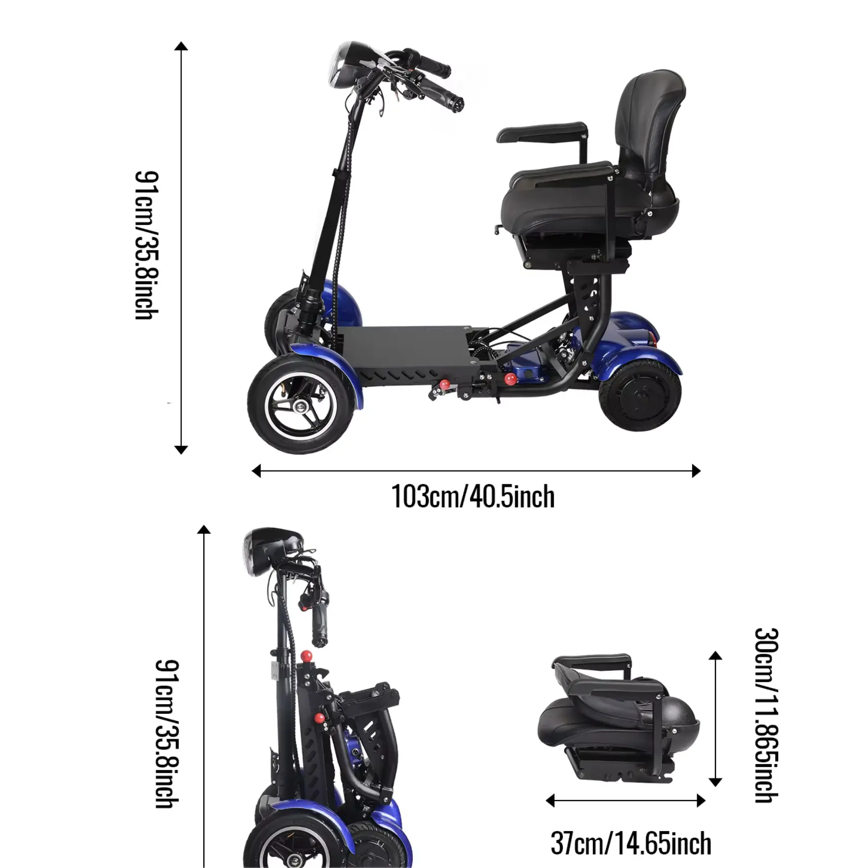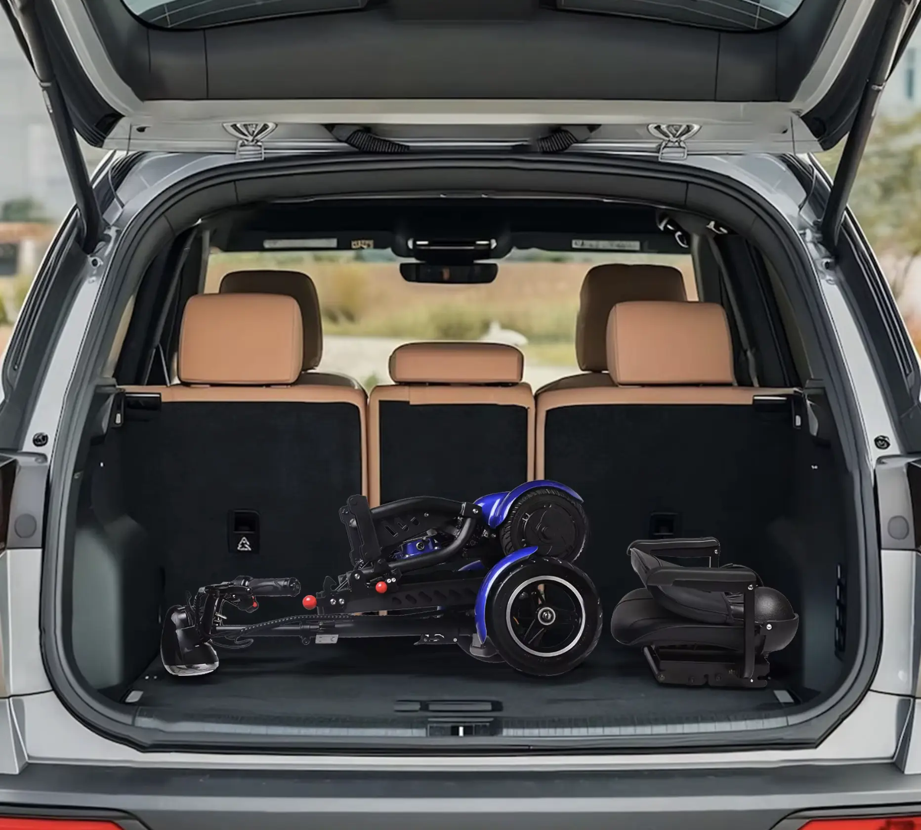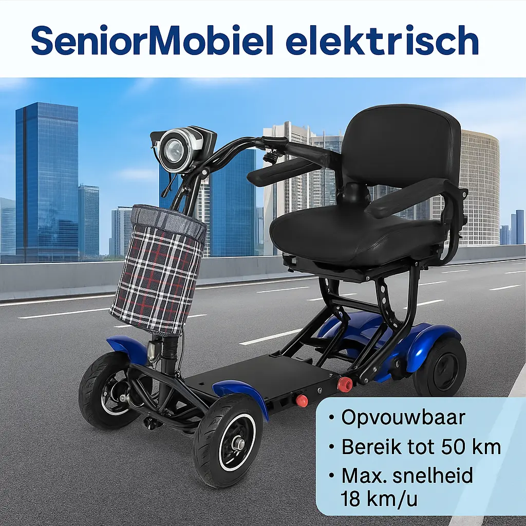Ervaar ultieme bewegingsvrijheid met de SeniorMobil V4, een krachtige en lichtgewicht opvouwbare scootmobiel ontworpen voor comfort, veiligheid en gemak. Met zijn dubbele motor van 500W, bereik van 50 km en maximale snelheid van 18 km/u is deze scooter perfect voor dagelijks gebruik – van boodschappen doen tot een ontspannen rit in het park. De tas wordt niet bijgeleverd en is ter illustratie.