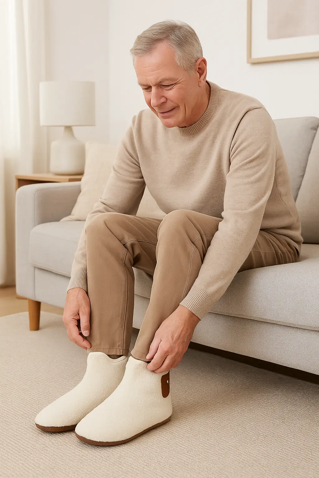 De laars is stijlvol, onderhoudsvriendelijk en geschikt voor zowel mannen als vrouwen. Mantelzorgers waarderen vooral het gemak van aantrekken, het hoge comfortniveau en de veilige grip in huis. Perfect voor relaxmomenten in de woonkamer, het opstaan uit bed of gewoon dagelijks gebruik binnenshuis.