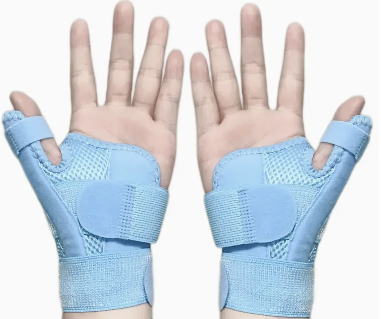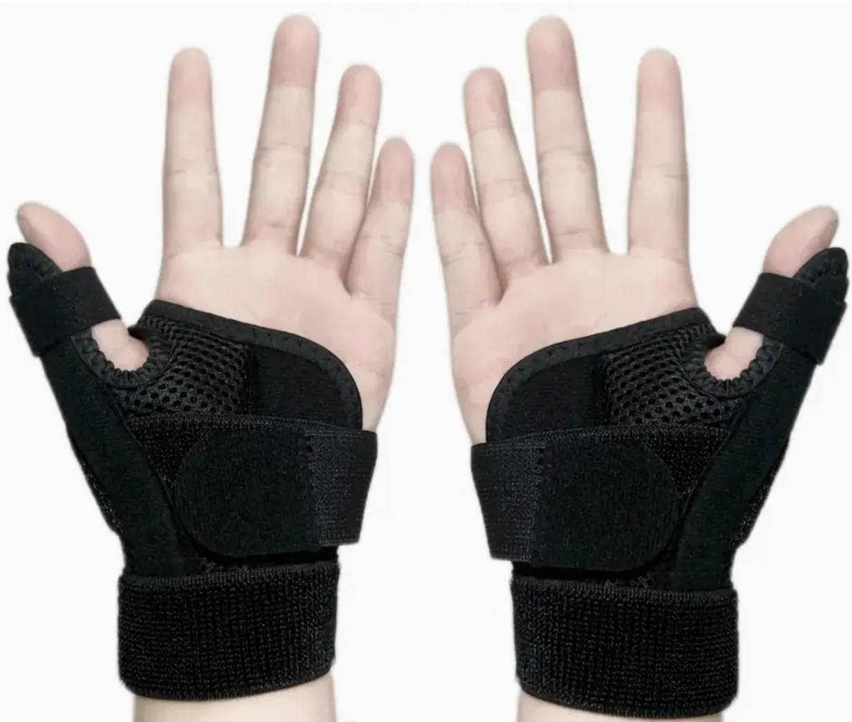 Deze set van 2 duimondersteuners is ontworpen voor zowel de linker- als rechterhand. Het lichte en flexibele materiaal zorgt voor een comfortabele pasvorm en kan eenvoudig worden aangepast met de klittenbandsluiting. Dankzij het ademende ontwerp zijn de ondersteuners prettig om te dragen, ook voor langere tijd.