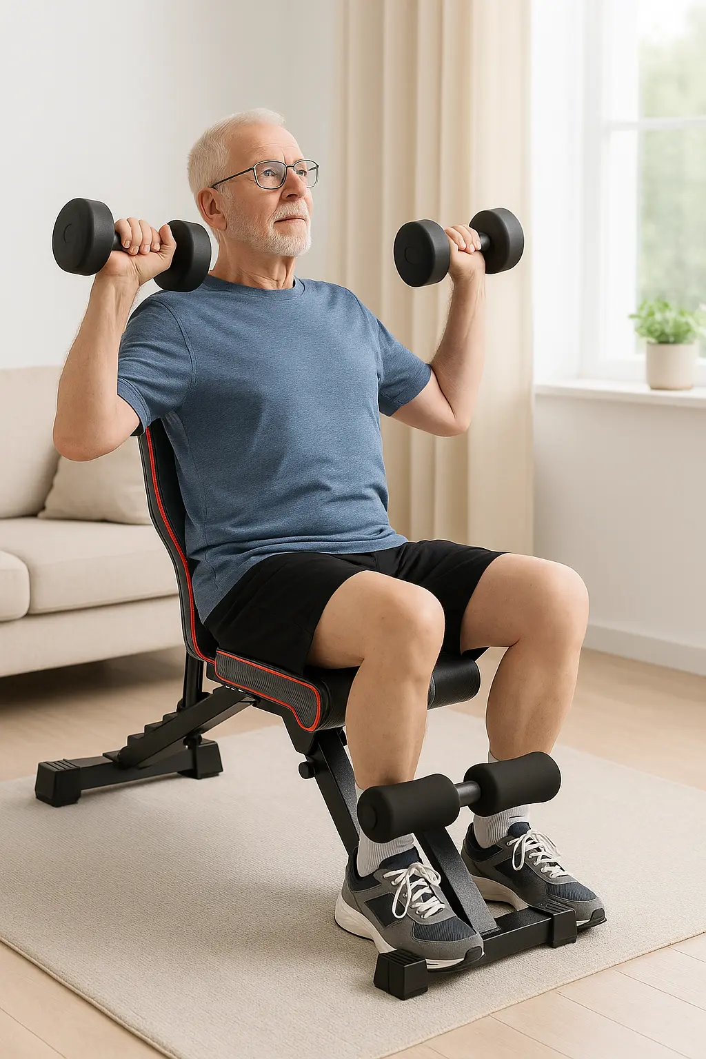 Dit verstelbare fitnessbankje is speciaal ontworpen voor veilig, comfortabel en veelzijdig trainen, met extra aandacht voor senioren en thuisgebruik. Dankzij de stabiele constructie, ergonomische ondersteuning en eenvoudige verstelbaarheid is dit bankje ideaal voor lichte krachttraining, revalidatie-oefeningen en dagelijkse beweging.